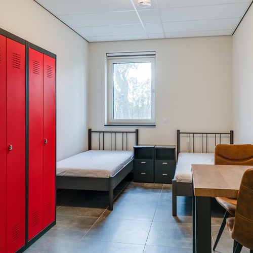 De woonlocatie, die op een paar honderd meter van het bedrijf ligt, is fris, modern en van alle gemakken voorzien. Medewerkers slapen met zijn tweeën op een kamer. De kamers zijn ruim opgezet en hebben veel daglicht. Er zijn ruime en moderne keukens, sanitaire voorzieningen én het gebouw heeft volop kleur. ‘We wilden geen saai en grauw gebouw; daarom hebben de muren en deuren bijvoorbeeld frisse kleuren’, zegt Inge. ‘Ook hebben we gekozen voor meubels die warmte uitstralen. En niet onbelangrijk: het gebouw is energieneutraal.’